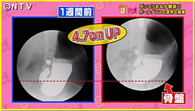 こちらの女性は…1週間前、胃の半分近くが骨盤の下にありましたが…なんと!1週間前に比べ、胃の位置が4.7cmも上がっていたんです!ほかの2人も、3cm近く上昇し、胃下垂が改善していました。