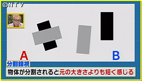 続いて使う錯覚技は、分割錯視。分割されると元の大きさよりも短く感じるのが、分割錯視。