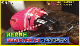 これらの装置をどのように動物たちに取り付けているのか?佐藤先生が最初に研究したウミガメの場合、まずはデータロガーとカメラをカメの甲羅に特殊な樹脂で取り付けます。体も大きく動きの遅いウミガメはこれまで海の底にいる貝やウニなどを食べているとされていたんです。しかしおよそ7年間の試行錯誤を経て、バイオロギングで衝撃の事実が分かったんです!
