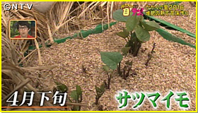 苗床とは、苗をつくるために作物が芽を出しやすい条件を整えた場所のこと。熱帯性の作物であるサツマイモが芽を出しやすい環境は20℃〜27℃の少し温かい土壌。松村先生は、まだ寒いこの時期、堆肥作りで生まれる熱をヒーター代わりにし、サツマイモから芽を出させ、苗を作ろうとしているのです。そのため、落ち葉や米ぬかの入った箱の上に土を敷きました。この箱の上の土で、サツマイモの苗を育てる計画!それから1週間…苗床の温度を確認すると…微生物が動き出し土の温度は30℃程度まで上がりました。種イモは去年収穫し、保存しておいたサツマイモ。これを、苗床に伏せこんでいくのですが…通常、ホームセンターなどで売っている種イモは既に消毒済みなので、必要ありませんが今回使うのは、去年ここで獲れたサツマイモ。元気な苗にするのに、消毒が必要なんだそうです。水と熱湯を半分ずつ入れ大体48度のお湯を作りお湯にサツマイモを漬けます。