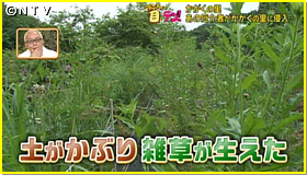 電気柵で守っている畑の中に、なぜイノシシが?そもそも電気柵の電流は電線に触れたイノシシが地面と 接触していることで体に流れます。しかし周囲の雑草が伸びてきてこれが電線に触れてしまうと漏電し、電流の威力が弱まってしまい侵入されてしまうケースも。ホームセンターなどでは雑草を防ぐ防草シートが売られていますが、これは、絶縁体のため地面に敷いてしまうとイノシシは感電しなくなる難点がありました。この問題を解決したのが野生動物の専門家、山本先生。太陽光を遮断する生地に銅線が編みこまれ、電気が流れる防草シート。これが功を奏し、去年は1度も草刈をする手間もいらず、イノシシの侵入を許すことはなかったのですが…。