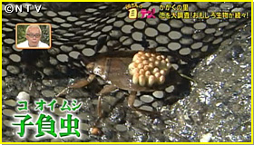 そして千葉先生が最も興奮したのが、メスがオスの背中に卵を産みオスが世話をするコオイムシ。昔は水田などで、いたるところに見られた虫ですが、水辺の環境の変化によって現在は準絶滅危惧種に指定されています。しかし元々、この池は、ただ穴を掘り湧水を入れてあるだけの人工的なため池。まさか、1年でこれほど多様な水生昆虫が生息する環境になっているとはびっくり!かがくの里では農薬を使っていないため今ではあまり見られなくなった生き物たちが住み着いたようです。この後、田んぼに豊作をもたらす小さな生き物出現!?