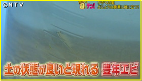 実は千葉先生は冬の間、池と田んぼの土を調査しました。その結果、どじょうが田んぼに行く確信を得たそうです。先生が取りだしたのは、池と田んぼ、それぞれの土に水を入れた、二つの簡易水槽。両方とも水温が上がってきた3月頃から、ミジンコが発生。そして今、田んぼの土を入れた水槽の方だけにこんな生物が現れたと言います。これは豊年エビという甲殻類。別名シーモンキーとも呼ばれる生き物。土の状態が良いと現れるという豊年エビ。田んぼの方が餌が豊富なので、どじょうが田んぼに行く可能性が高いのです!