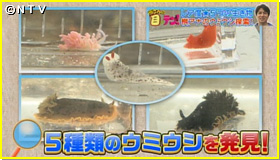 ウミウシがいる岩陰や海の底を重点的に探します。探索開始から、およそ20分。他の生き物とは違いなかなか見つかりません。すると、山田さんがウミウシを発見。桝アナ、先を越されてしまいました。噛んだガムのような小さいウミウシ。見つけたのは、ピンク色をした「サガミミノウミウシ」。体はふわふわとしたミノ状の突起で覆われています。