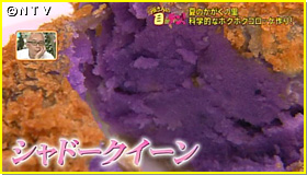 数分後…いい色に揚がりました。科学的にホクホク感が出るよう作ったキタアカリのコロッケ。さっそく揚げたてを頂きます。同じ調理法でコロッケにした他の品種も食べ比べ。食べているだけに見えますが、これも「食味評価」という立派な科学!今回、一番評価が高かったのは…定番の「男爵」。そして2番目は意外にも、真紫のシャドークイーン!揚げたてコロッケ食べ比べ実験!かがくの里ならではの贅沢。