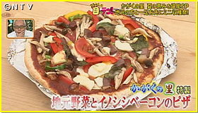 全粒粉だけではパンがふくらみにくいので、強力粉と混ぜて、栄養と美味しさの「いいとこどり」。あとは一般的な作り方と同じ!材料を全部混ぜあわせて・・・、生地をよくこねてから、30分休ませ、発酵させます。発酵が終わったら、パンの形にしていく作業!さらに発酵させた後、表面に卵を塗って、あとは焼くだけ。続いてはピザです!パンと同じやり方で作った生地に具をトッピングしていきます。野菜は全部、ここ常陸太田のもの。オープンしたばかりで大賑わいの道の駅で手に入れた新鮮な地元の野菜。そして特製のイノシシベーコンに加えモッツァレラチーズも露久保先生の手作り。それぞれが思いを込めてピザのトッピング。ピザやパンを焼くのは、もちろん阿部さんが作った窯。そして実はもう1台!阿部さんの窯と同じ原理ですが、焼き窯をロケットストーブに乗せるだけの、お手軽な窯が。