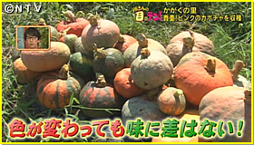 畑にはピンク色の里川カボチャしかありません。荷見さんによると、畑の2km以内で緑色のカボチャを栽培しているとハチやアブがその花粉を運び里川カボチャに受粉させしまうのだそう。ただし!色が変わっても、味に差はないとのこと。そこで、里川カボチャの味を確かめるため食のサイエンティスト露久保先生に里川カボチャを料理してもらいます。まず味見をするとかなり甘いカボチャのよう。 このカボチャを使ってみんなでハロウィンパーティーの開催を決定!