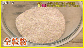 それを松村先生と阿部さんが機械にかけ細かく砕いて、小麦をまるごと粉に。出来たのが全粒粉。小麦の栄養が全部詰まってます。でも、全粒粉だけだとパンがふっくらと仕上がりません。一部をふるいにかけて、胚乳と言われる白い部分だけに。ふるいにかけた白い小麦粉と全粒粉、両方を使い、収穫祭前日、調理科学の専門家・露久保先生にパン生地を前もって仕込んでいただきました。