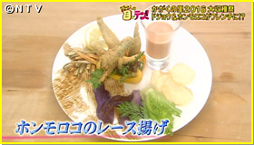 そしてもう1品。2016年、里の池には、1キロ3000円で取引される高級魚・ホンモロコも放流。名付けて「ホンモロコのレース揚げ。」小麦粉、ベーキングパウダー、卵白、水を合わせて作った衣でサクサクに挙げました。