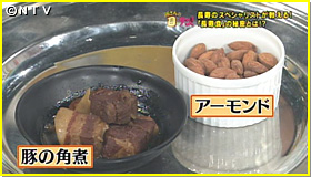 特に下方先生がオススメする食材は、アーモンドと豚の角煮。アーモンドにはビタミンEが豊富で、手に入りやすい。