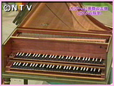 これがピアノの前身「チェンバロ」。 鍵盤の色も違っていて、不思議な楽器ですよね。