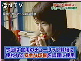 さて、スタジオではチューリップの球根を使った料理をフルコースでご紹介しました。これは球根の甘さを生かしたメニューでしたが、実はチューリップには球根以外にも食べられる部分があるんです。それが、花びら。もちろん、すべてのチューリップが食べられるというわけではなく食用に改良・栽培されたもののみですが、あか〜しろ〜きいろ〜♪と、それぞれの色によって微妙に味が異なっていておもしろいです。シャキっと歯応えがあり、サラダなどの彩りに使うそうです。