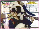 サルに囲まれるスタッフ、サルの手相鑑定大変でした・・・