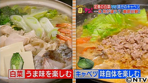 「白菜」はうま味を楽しむ鍋に、「キャベツ」は最近人気の濃い味の鍋に合うという"相性の違い"があったのだ!