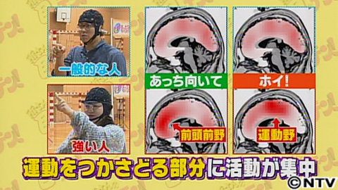 強い人の場合、“あっち向いて”という準備段階のときは、前頭葉が集中した活動をして、そのあと“ホイ”と動かすときには、運動野のほうが働くという形で、脳の部位の活動もメリハリがありました。今やるべきことにだけ集中して焦点を当てているような脳の活動が見られたのです」これは熟練したスポーツ選手のような動きなのだそう。