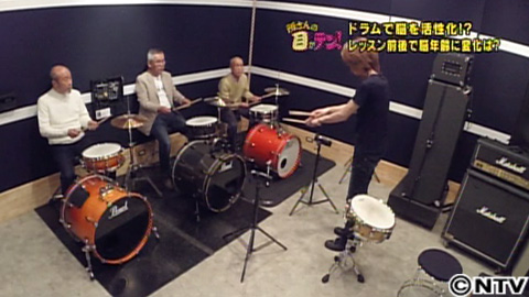 最近、物忘れが激しくなってきたという70代の男性3人に、初心者用のドラムレッスンを1時間受けてもらいます。すると、45分ほどで、ビートルズの曲に合わせてドラムが叩けるようになりました。