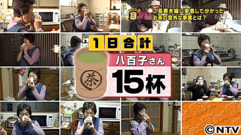 しかし、ご長寿夫婦に1日密着したところ、意外な事実がわかったんです!朝食、八百子さんが飲んだお茶は湯飲み2杯分。欣市さんも同じく2杯、飲みました。その後、欣市さんは昼食や3時の休憩など合計12杯!さらに八百子さんは…なんと1日合計15杯ものお茶を飲んでいたんです。どうやら、このお茶の飲み方が健康長寿につながるようなんです。