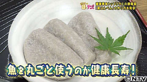こちらが竹野達三さん83歳。その秘密が、静岡名物、黒はんぺん。日常的によく食べられているそうです。しかも、その食べ方もおでんやフライなどバリエーションが豊富。静岡の人にとって、はんぺんと言えば「黒」しかないそうですが・・・一般的に、はんぺんと言えば白のイメージですよね。これはスケトウダラなどの白身を使っているからなんです。なぜ黒はんぺんは黒いのか?実はその黒さに健康長寿の秘訣が!