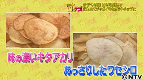 セバスチャンの2人がかがくの里に戻ると…農業の専門家高橋先生と、千葉先生が迎えてくれました。そこに用意されていたのは…かがくの里に来たばかりの高橋先生が初めて植えた作物ジャガイモ。「きたあかり」と「ワセシロ」。ワセシロは癖のない味で、揚げた時色が変わりにくいことからポテトチップなどの加工用に使われる品種なんです。
