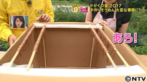 しかし翌朝とんでもないことが!さらに伸ばすため、段ボールを開けると…なんとそうめんが全部ちぎれて落ちてしまっていたんです。