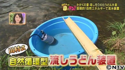 それでは、いよいよ流しうどん大会を始めましょう!まずは、自然循環型装置。