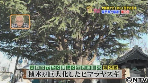 続いて、第2位は?後藤さんによると、歴史ある街並みの風情にすごくピッタリマッチしていて、景観としてもとても優れているとのこと。下町風情が色濃く残る、台東区・谷中。「美しい日本の歴史的風土100選」にも選ばれている、谷中のシンボル・ヒマラヤスギです。でもいったいなぜ、建物のすぐ隣にこんな巨木が生えているのでしょうか?実はこの巨木、元は植木だったんです。やがて根っこが植木鉢を突き抜け、その場に根を張りわずか90年で、お店の主人もビックリの巨木に生長したんです。