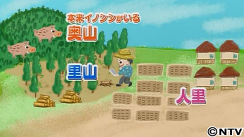 続いて阿部さんが見せたのはイノシシの痕跡。今は電気柵がはってあるから畑には入れませんが、電気柵の外には新しい足跡があり、今も作物を狙い続けているみたいです。イノシシが人里に近づいてしまう原因は裏山。木々が伸び放題で、これが人里にイノシシが近づけてしまうのです。そこで今年から、本格的に動き出したのが里山再生プロジェクト!長年放置され、暗く荒れた山から木を伐り出し、木漏れ日溢れる美しい里山へ生まれ変わらせる計画。里山を手入れすれば、イノシシも人里へ近づきにくくなるといいます。