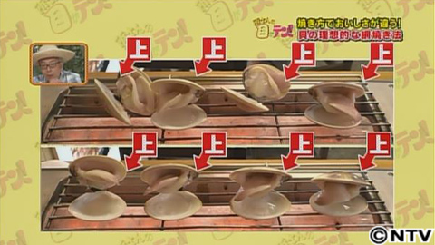 殻の中で汁と一緒にグツグツ煮える貝の網焼きですが、網焼き屋さんで皆さんの焼く様子を見てみるとパカっと貝が開いた時、殻の上に身が持っていかれる現象が続出。試しにまとめて焼いてみると8個中全て、身が殻の上になってしまったんです。