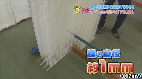 ここから3時間ほど乾かすことで、水分が飛び縮んで0,4mmの極細そうめんになるのです。