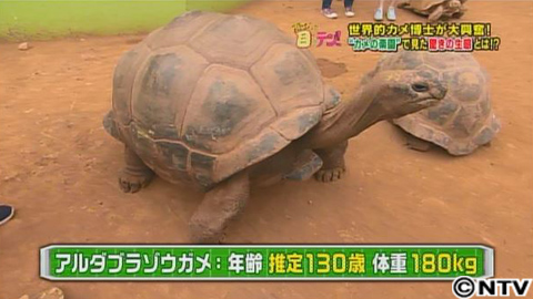 さらに、推定130歳、体重180キロもある「アルダブラゾウガメ」もお目見え。