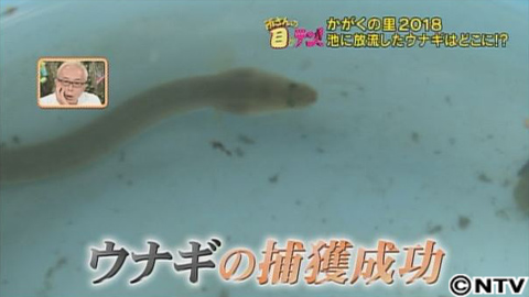 翌日、捕獲機を引き上げてみると…中はからっぽ。次々と仕掛けを引き上げますが、どれもからっぽです。ようやくかかった!と思ったら、それはドジョウ。実は、3年前の収穫祭の時に所さんが放流した100匹のドジョウが、うなぎよりも前にため池で養殖されていて、今回捕まえたのは、2世代目のドジョウだったのです。
