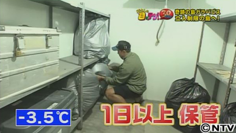 さすがに着ているものをこの場で脱ぐわけにはいかないので、島に行くときに着る服を消毒してもらいます。消毒したあとは、マイナス3.5度の冷凍庫に1日以上保管、生き物が持ち込まれないよう念には念を入れます。