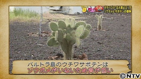 そしてエスパニョーラ島では、なんとサボテンもゾウガメに合わせ独自に進化していました。170センチ以上の場所に実ができているのです。