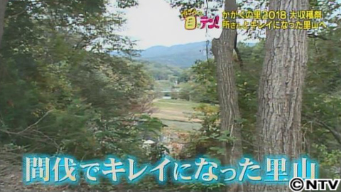 ようやく今年1月から取り組み始めた里山再生プロジェクト!荒れ放題の里山は、本来山奥で暮らすイノシシが人が住む場所まで降りてきてしまう原因の一つなんです。そこで阿部さんが、地元森林組合の皆さんの助けを借りて、里山整備をスタート。一生懸命、木を切って、キレイにした里山。急な坂を上ると、素敵な景色も。これも里山の木を間伐したおかげ。