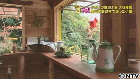 そもそも小屋の目的は、阿部さんの脱衣所でしたが、中に入ると、と~っても女子力高いオシャレな内装。手伝ってくれたのは、西野さんの友人、中野さんのセンス。