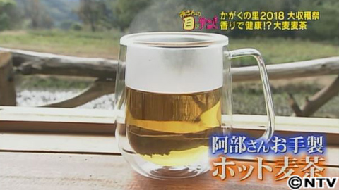 食べる時は、精麦といって皮を取る必要がありますが、今回は皮付きのままでいい麦茶に!一度よく洗い、乾燥させてから10分程炒った大麦にお湯を注ぐと完成。阿部さん手製の麦茶。所さんも「おいしい」と満足。