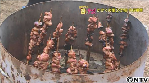 そして、西野さんからお腹に入るプレゼントが。西野さんが朝から準備していたのは、地元で獲ったイノシシ肉の串焼き!