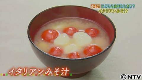 酸味がすごくよく合う!チーズのミルク臭さがマイルドになって、みそとすごく一体感になって本当に美味しい!調和がいいバランスです!と、イタリアンみそ汁!なかなかの高評価です。