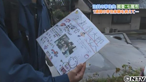こうして1週間の移住生活を終え、スタッフが合流。すると、移住生活で出会った皆さんが別れのあいさつに。小山さんからは能登のお酒を、子供たちからは子供たちから寄せ書きの色紙を頂きました。