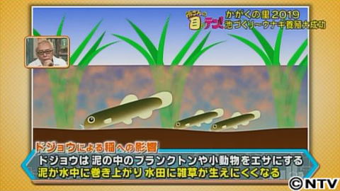 この夢を叶えるためにやってきたのが、魚養殖の専門家、千葉先生。かがくの里のため池を視察した結果、ここで養殖できそうな魚はドジョウだといいます。確かにドジョウ養殖は、かがくの里にピッタリ。ドジョウは普段は池にいますが、産卵の時は田んぼに入り、卵を産みます。すると田んぼの稲にいい影響が!