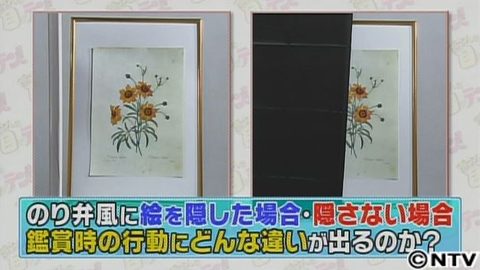 花の絵をのり弁風に布で隠し鑑賞した場合、隠さない時と比べ、行動にどんな違いが出るのかを検証します。