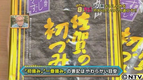海苔は収穫回数が多くなるほど硬くなる性質があり、収穫シーズンの最初に摘んだ柔らかい海苔は「初摘み」または「1番摘み」と表記され販売される事が多いのです。
