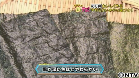 そしてもう1つ、柔らかい海苔を見極めるポイントが海苔の色。より黒いものを選ぶのがおすすめ。柔らかい海苔には色成分がより多く含まれており黒く深い色の方が、柔らかい海苔の目安となるのです。