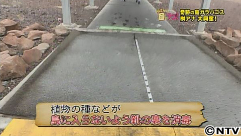 成田空港を出発。およそ13時間かけてアメリカへ。さらに、エクアドルの首都キトまで5時間。キトで一泊したのち、さらに3時間半かけてガラパゴス諸島へ。乗り継ぎも含めると30時間以上の長旅です。しかし、ガラパゴス諸島ならではの光景に桝さん、到着した途端に大興奮!自他共に認める変なテンションになっちゃっています。飛行機を降りてすぐ、足元には外から植物の種などを入れないための消毒マットがあり、その上を歩かなくてはなりません。
