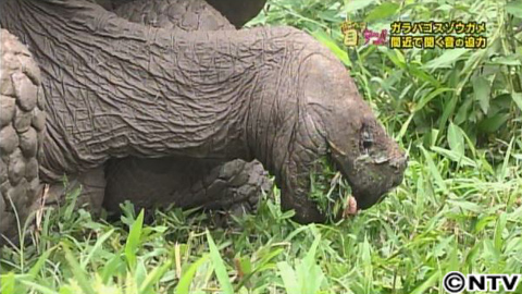 これほどの数の野生のゾウガメを見られる場所は、世界でもほとんどありません。車が通る道路を我が物顔で歩く姿まで見られます。陸に住む泳げないカメの中では世界最大。大きいものでは体長1m50cmで、体重300kgに達するものもいます。ここでの桝アナ一押しの貴重映像は、「ガラパゴスゾウガメの音」。「バリバリバリ」と、草を豪快に引きちぎる姿は、まるで恐竜。