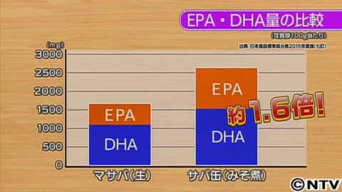 文部科学省のデータによると、サバ缶には、100g当たりに含まれる、EPA・DHAが生のマサバのおよそ1.6倍!