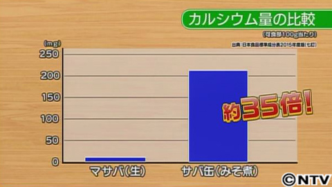 しかも、缶詰に入っている骨は非常に柔らかくて食べやすくなっているため、丸ごと食べることができます。これが生の可食部を食べるより、効率よく栄養を摂取できるということになり、サバ缶のカルシウム量は、生のサバのおよそ35倍にもなるんです!