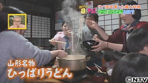 サバ缶を使った郷土料理とはどんなものなのか?佐藤アナが市内のスーパーを調査してみると、一際目立つサバ缶売り場が!サバ缶を買う村山市民に話を聞いてみると、「ひっぱりうどん」という料理名が。どうやら、山形の謎の郷土料理は、サバ缶を使ったうどんのようです。村山市には、この「ひっぱりうどん」がかなり浸透していて、ほかの地域とは売れ行きが違うといいます。元々、サバ缶がツナ缶よりも売れていたんだとか。市内のあるお宅を訪ねてみると…大量にストックしてあるサバ缶が!実は村山市には、かつて缶詰工場があったため、サバ缶が手に入りやすく、よく食べられるようになったのだそうです。さあ、村山市民が愛してやまない「ひっぱりうどん」とは?