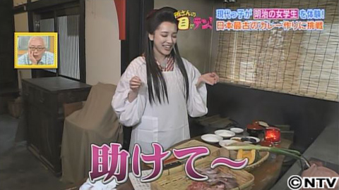 この時代、学校から帰ると家の手伝いをしていた女学生。当時の夕食作りを体験することに。明治時代になると、庶民も西洋料理に興味を持つようになり、西洋料理の指南書が数多く出版されるようになりました。今回は、明治5年の西洋料理指南書に書いてあるカレーを作っていきます!書物に書かれたカレーのレシピ通りに食材を用意。都丸さん、難しそうな漢字だらけの指南書を理解して、当時のカレーを作れるのでしょうか?分からない場合は、ギブアップボタンを押せば先生が助けにきてくれます。