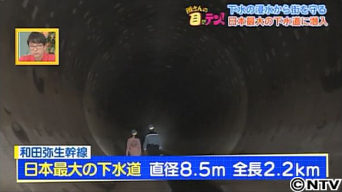 やってきたのは、中野区から杉並区にかけて神田川付近に作られた地下50mの地下巨大施設。直径8.5m、全長2.2km、日本最大の下水道です。